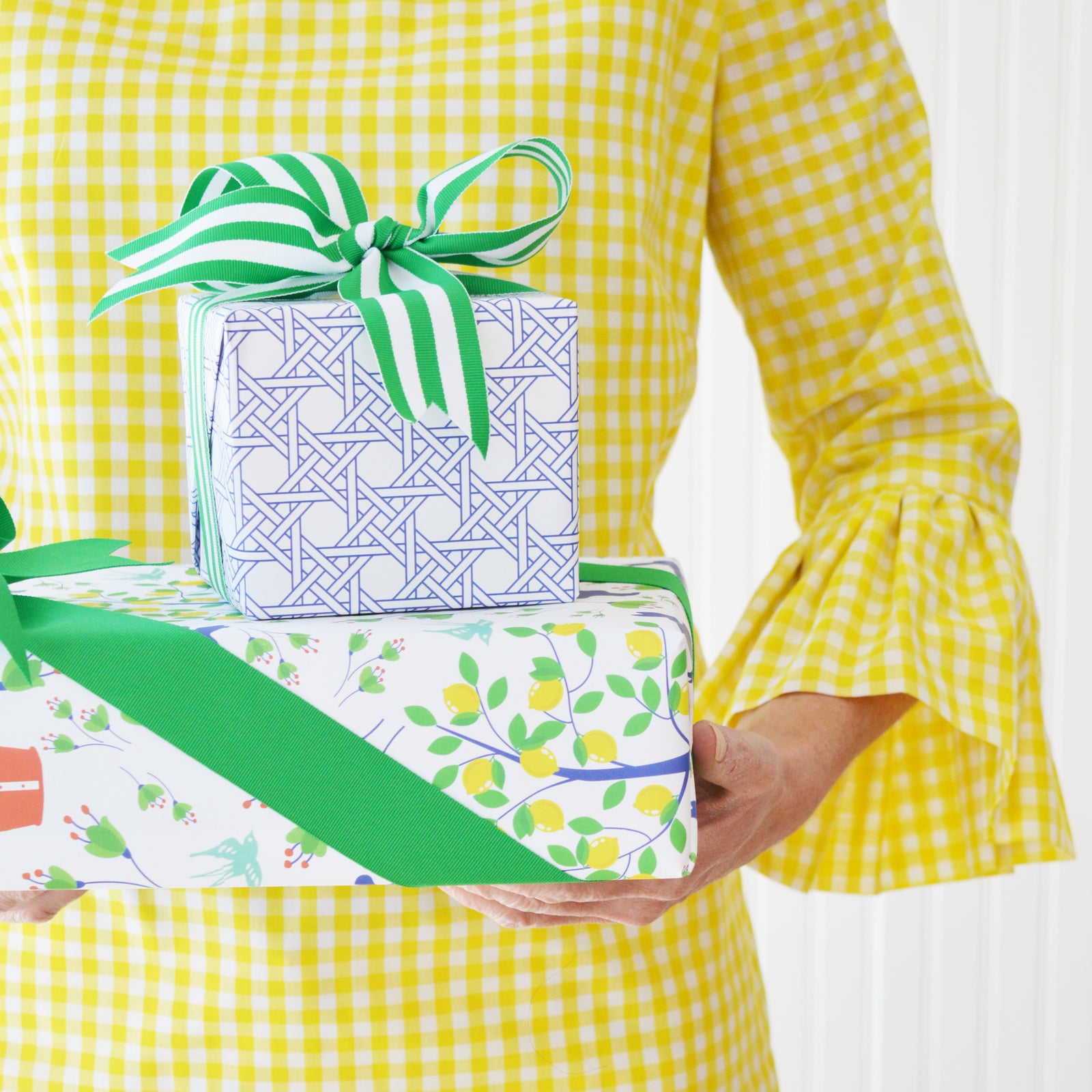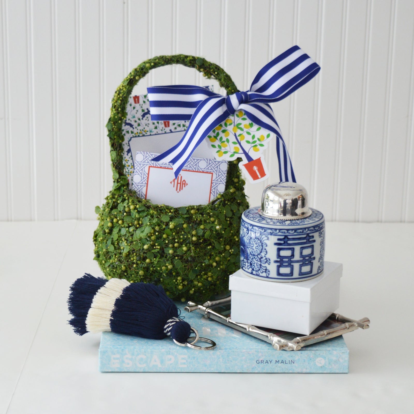Patrick has always loved the song from the Irish Rovers that talks about Noah's Arc and exclaims "there were green alligators and long necked geese, some humpty back camels, and some chimpanzees." I wanted it to have a preppy vacation feel to it - bamboo, palm leaves, seersucker and green alligators just works, am I right?! I designed the invitation to reflect those concepts, and included a few verses of his favorite song on the back.