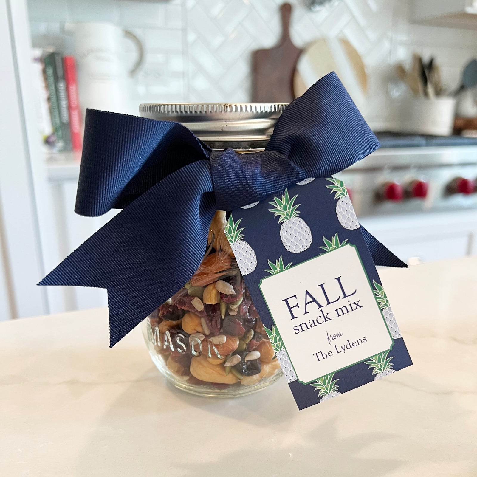 Looking for a cute neighbor gift for Fall?! We came up with a delicious snack mix that is perfect for munching on during the big game, adding to a charcuterie board, etc.