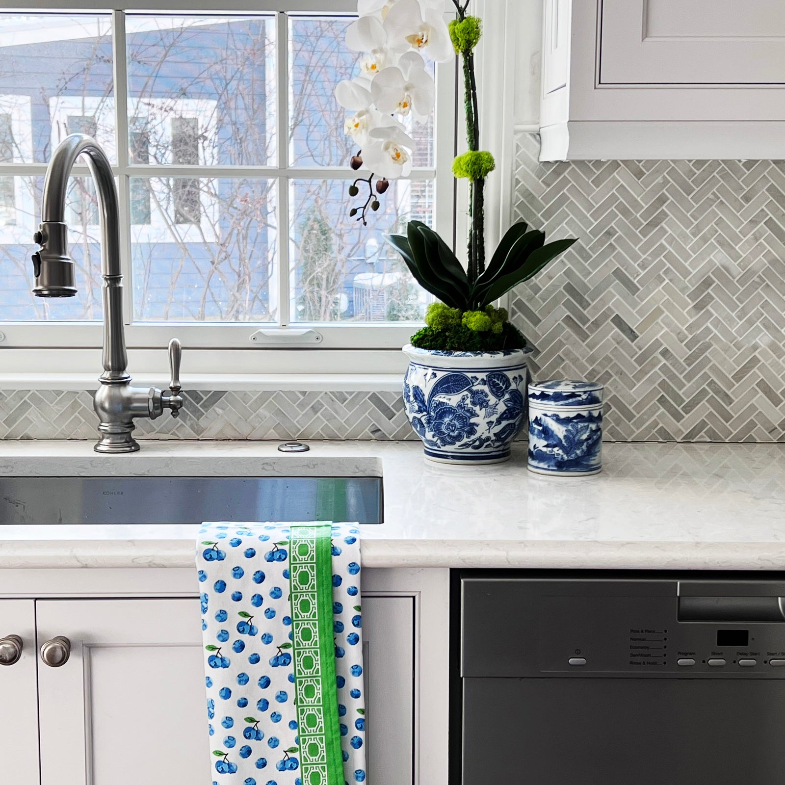 Sunday Kitchen Clean-Up calls for a fresh tea towel. Blueberries it is! Have you peeked at our tea towels lately?! You'll find some new designs popping up!