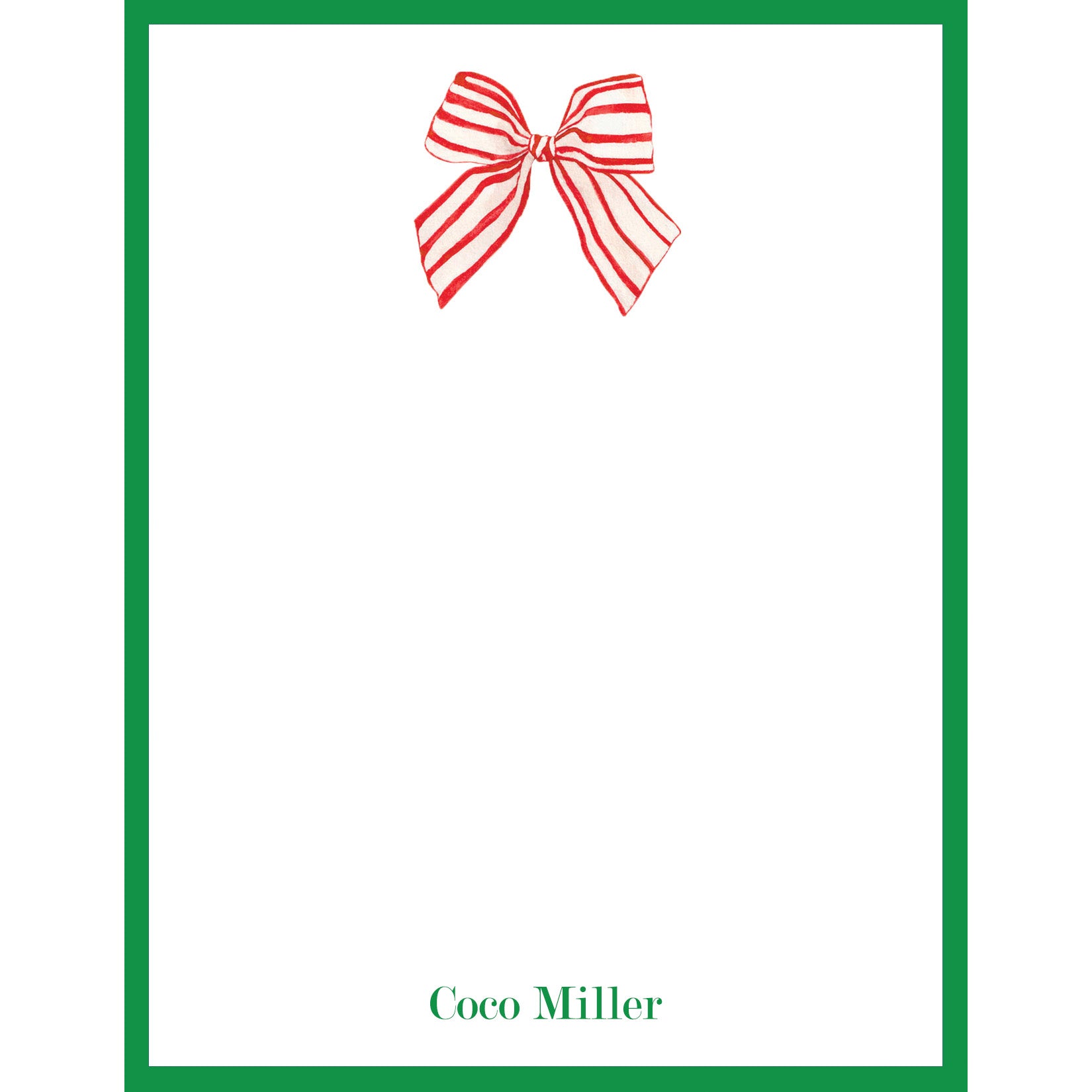 Perfectly preppy in every way. Meet our newest personalized notepad design: the Red Striped Bow! Write your notes in style with our personalized notepads. This darling new design features our festive red striped bow, along with your personalization at the bottom. It is available in the following sizes: