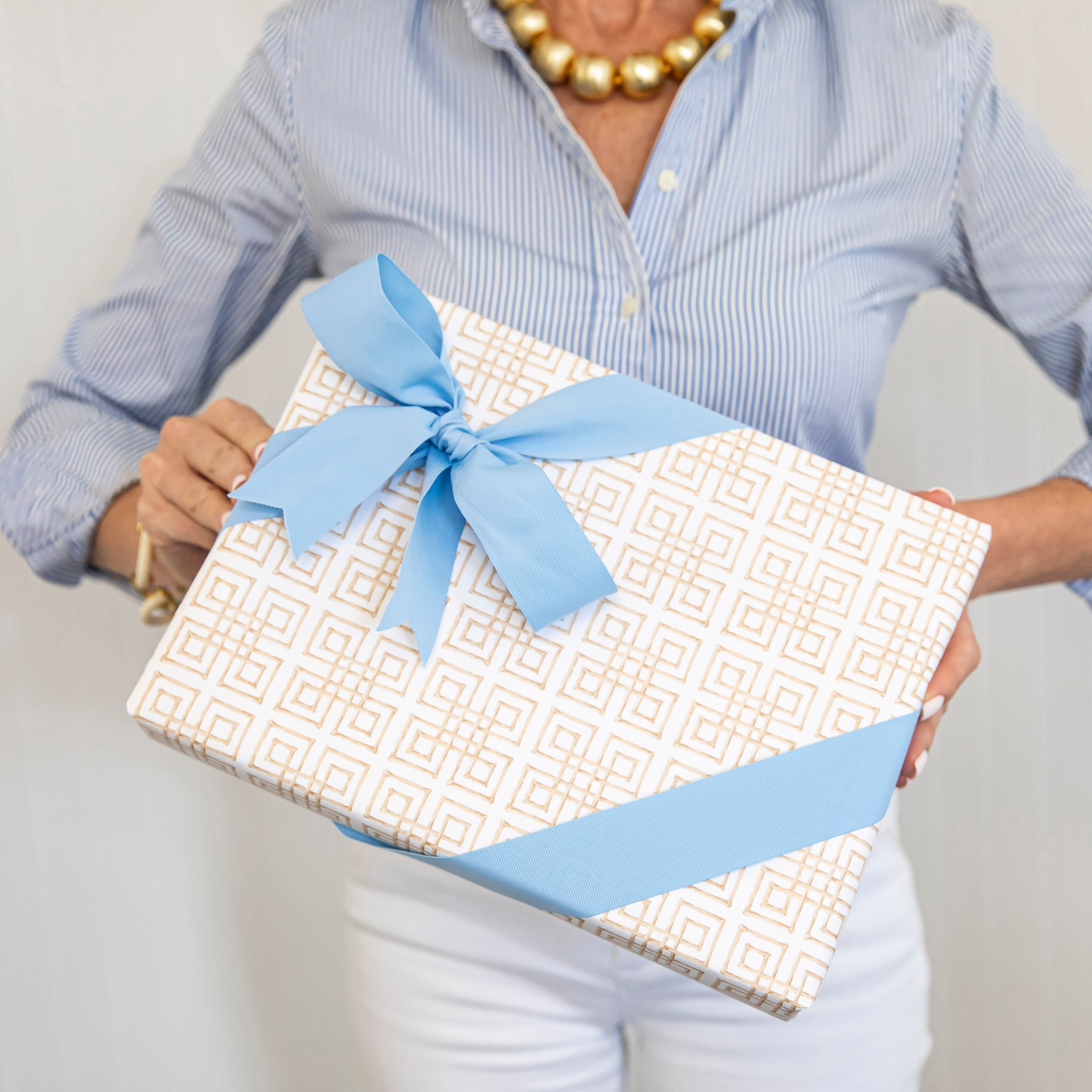 We are thrilled to bring our colorful patterns to the market in larger, easier to use rolls. Vibrant colors, preppy patterns - perfect for all of your wrapping needs. This roll features our tan bamboo fret pattern.