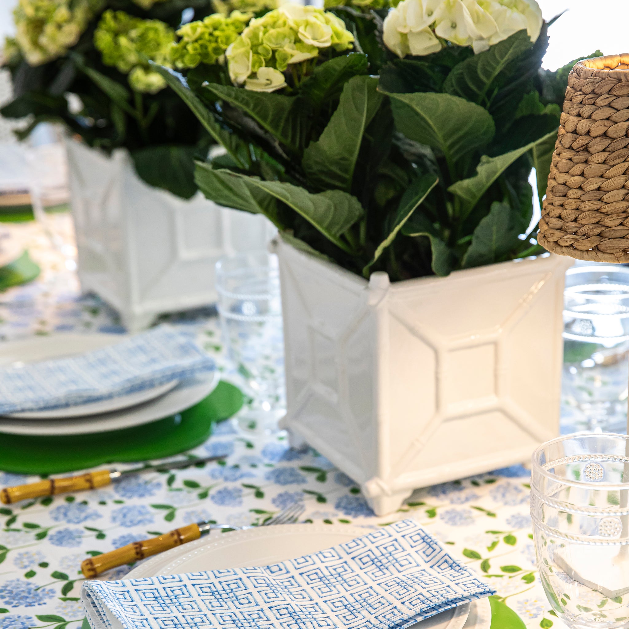 Complete your table with our coordinating cotton dinner napkins, designed to pair perfectly with our luxe tablecloths. Sold in a set of 4, these napkins are crafted from 100% cotton and are machine-washable for easy care. The crisp blue and white pattern bring a polished, preppy touch to your table, whether you’re hosting a holiday dinner or enjoying an everyday meal. Mix, match, and layer them with your favorite WH Hostess pieces to create a table that feels both beautiful and memorable.
