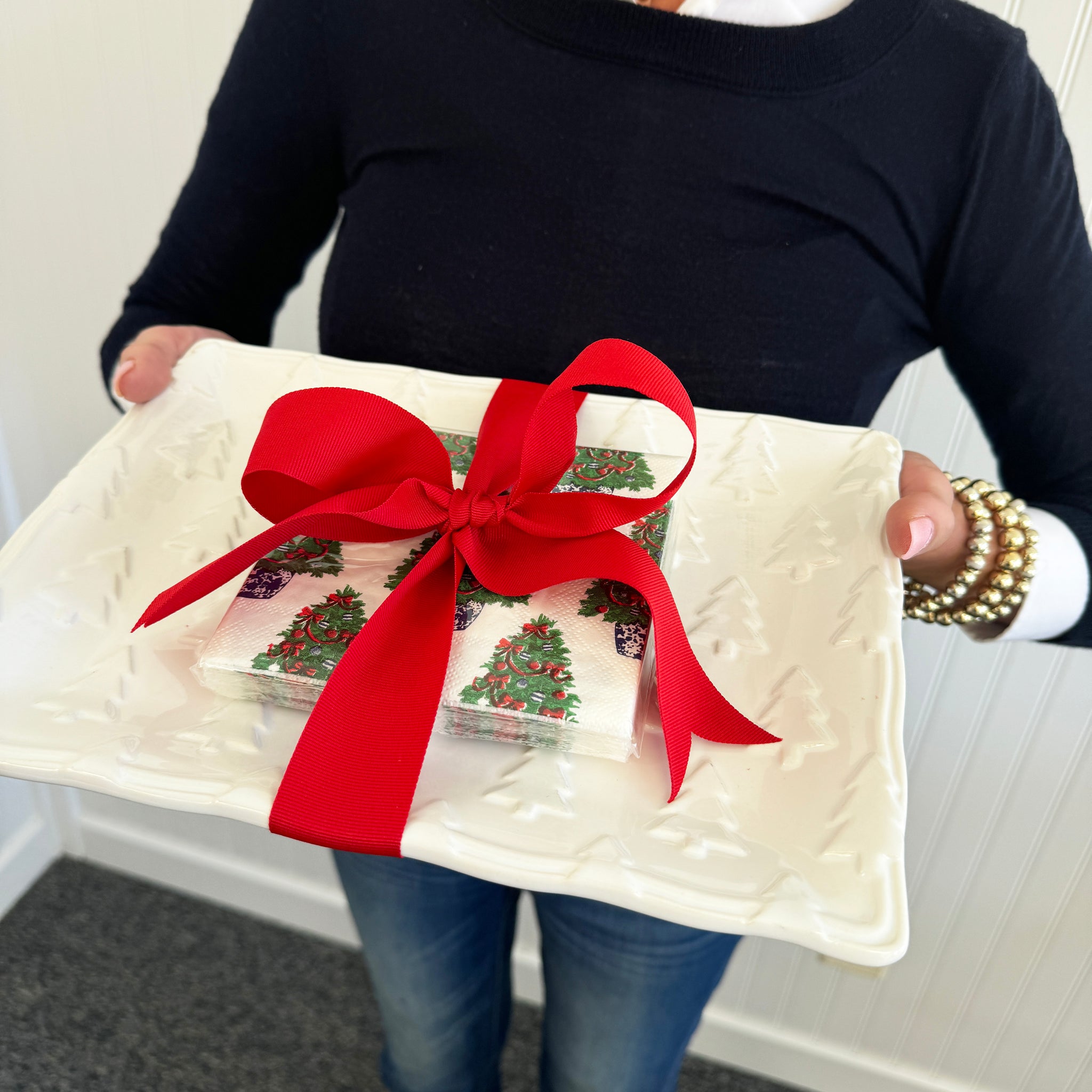 This darling Christmas tree ceramic platter is perfect for holiday entertaining! This bundle includes the platter and a pack of our Christmas tree cocktail napkins.