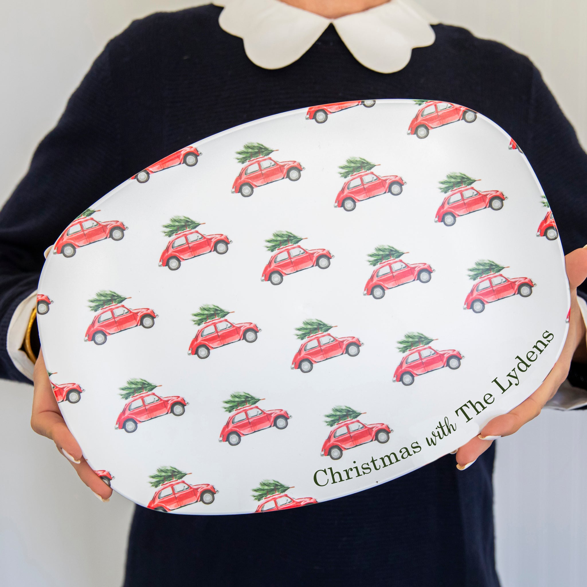 Our brand new platters make a great addition to our entertaining items. They look and feel like melamine, but are BETTER!! This classic Christmas Car pattern is perfect for holiday entertaining.