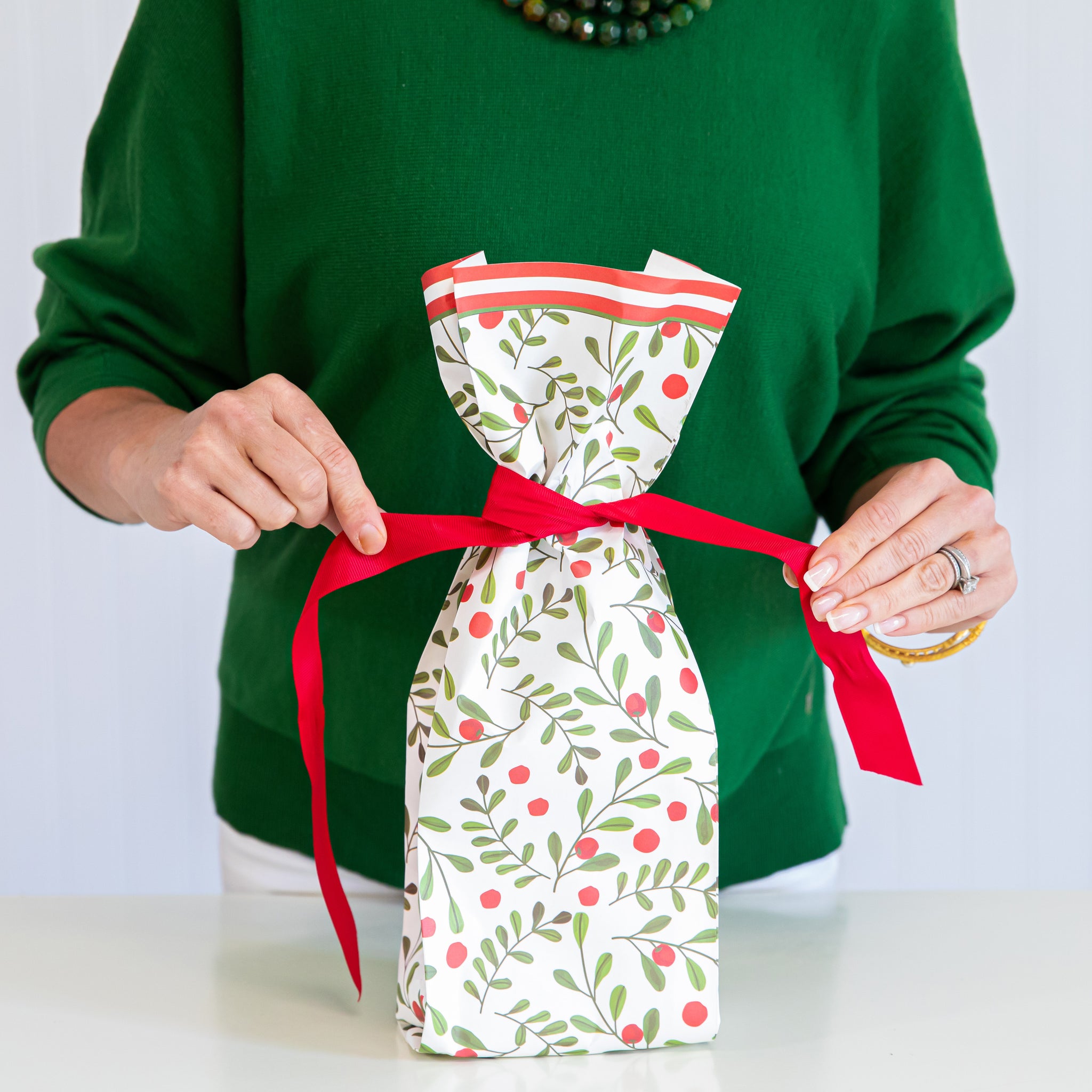 Each kit includes 8 mod holly luxe paper wine bags + grosgrain ribbon. Perfect for Christmas! They are offered in different preppy patterns and are perfect to have on hand to package a bottle of wine or small gifts in style.