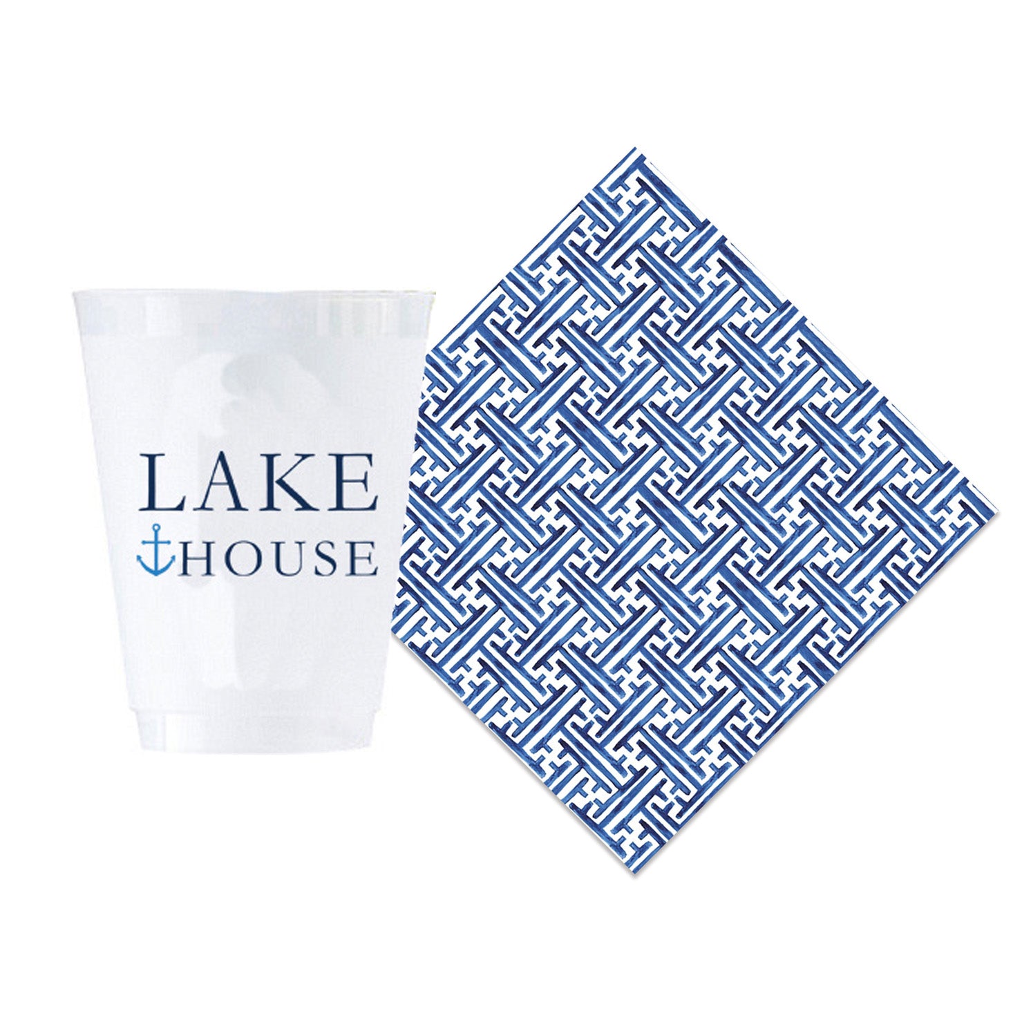 Bundle: Lake House Shatterproof Cups + Navy Basketweave Cocktail Napkins