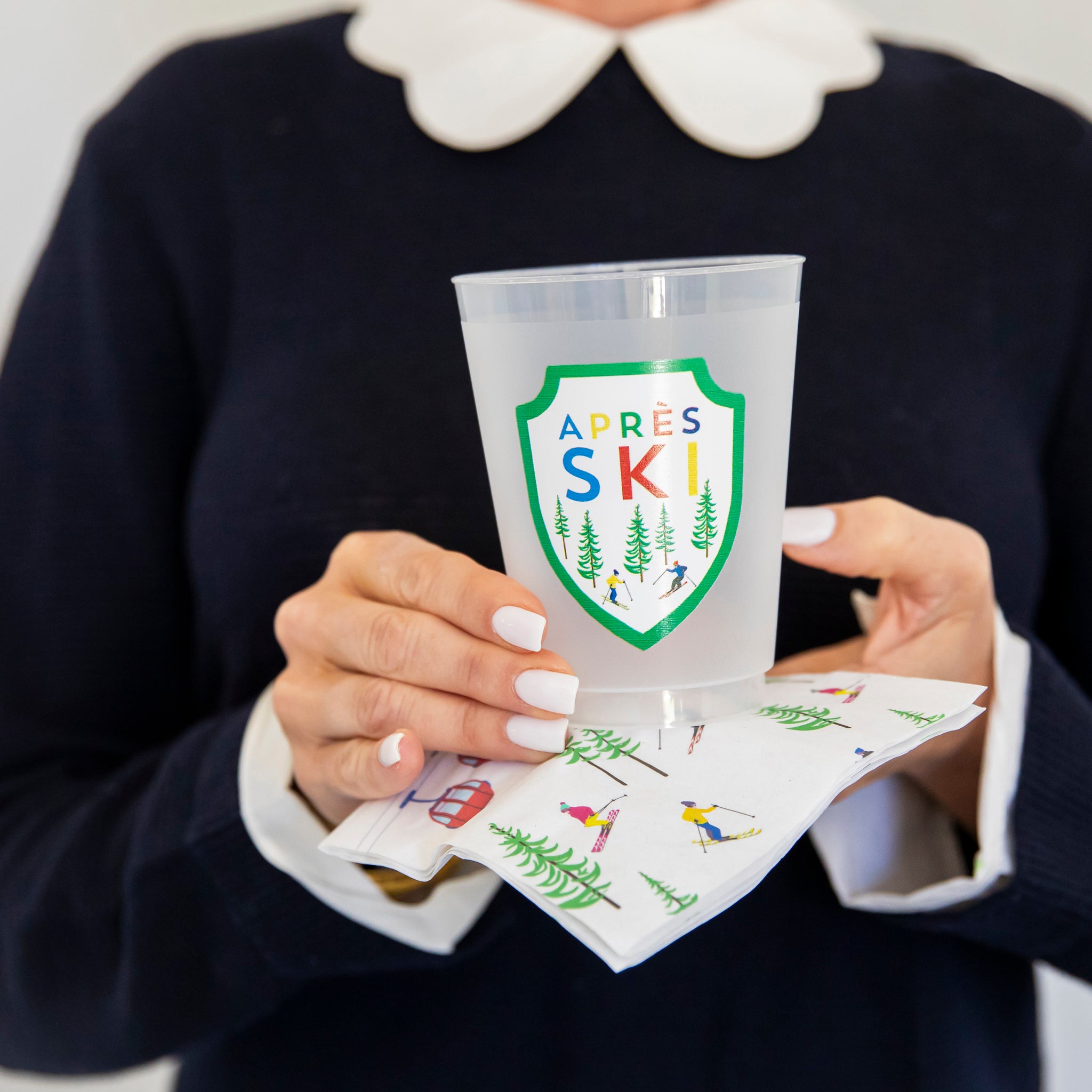 A darling addition to your home for entertaining, or a charming holiday hostess gift...our shatterproof cups with a colorful ski patch and "Apres Ski" on the front of the cup. ...