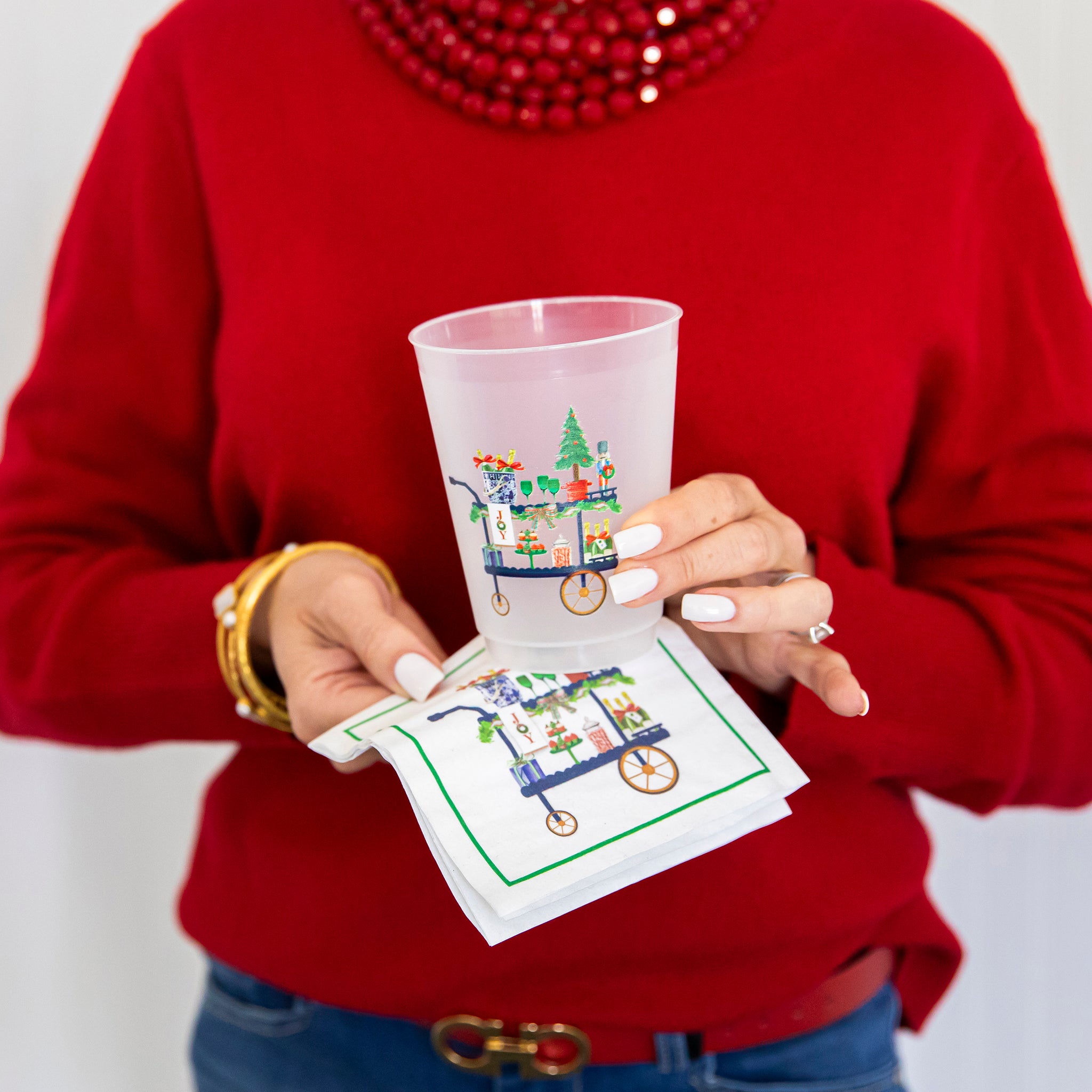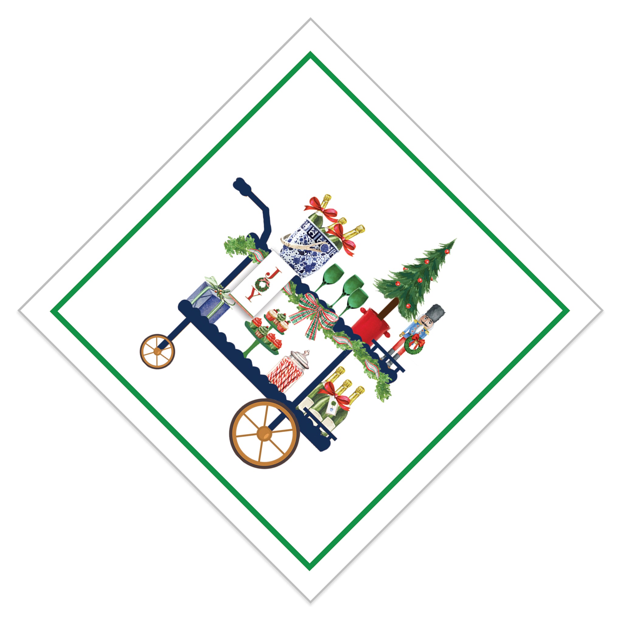 We are THRILLED to introduce the newest product to the WH collection: paper cocktail napkins! 5"x5" folded and 3-ply paper, they hold our charming Christmas Bar Cart design on the front...