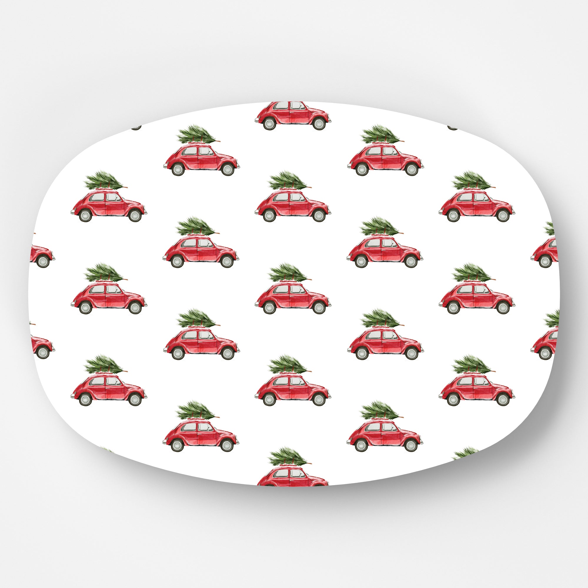 Our brand new platters make a great addition to our entertaining items. They look and feel like melamine, but are BETTER!! This classic Christmas Car pattern is perfect for holiday entertaining.