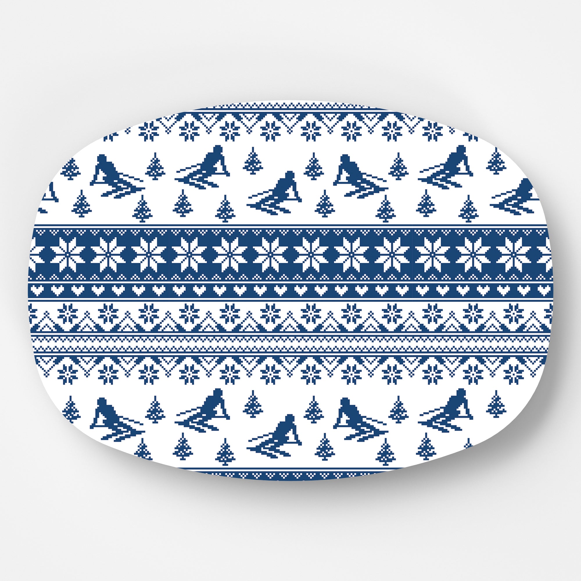 Our brand new platters make a great addition to our entertaining items. They look and feel like melamine, but are BETTER!! This classic fair isle sweater pattern has the classic look of a ski sweater, and is perfect for winter entertaining.