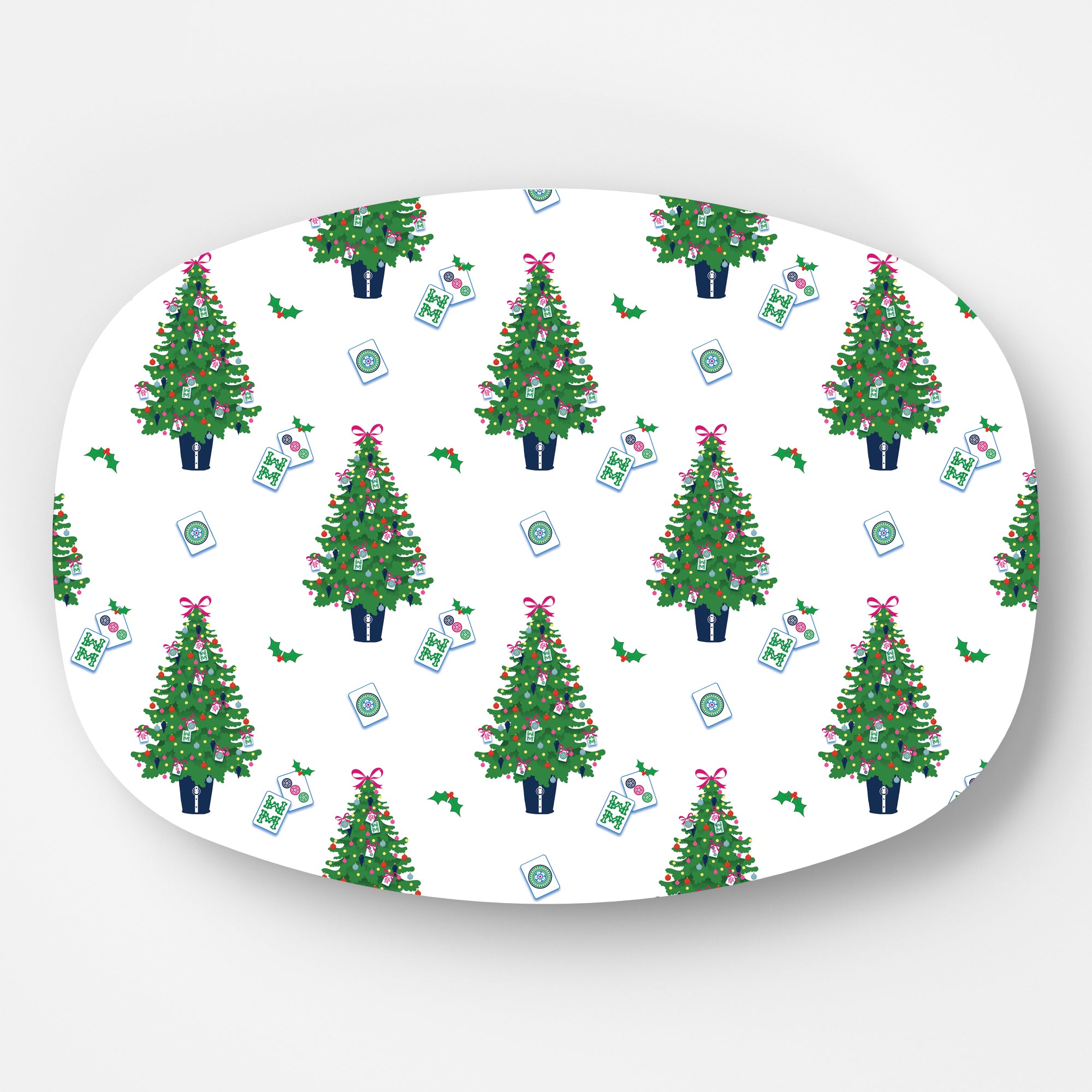 Our brand new platters make a great addition to our entertaining items. They look and feel like melamine, but are BETTER!! This Merry Mahjong Christmas Tree pattern is full of tile ornaments and perfect for Christmas entertaining.